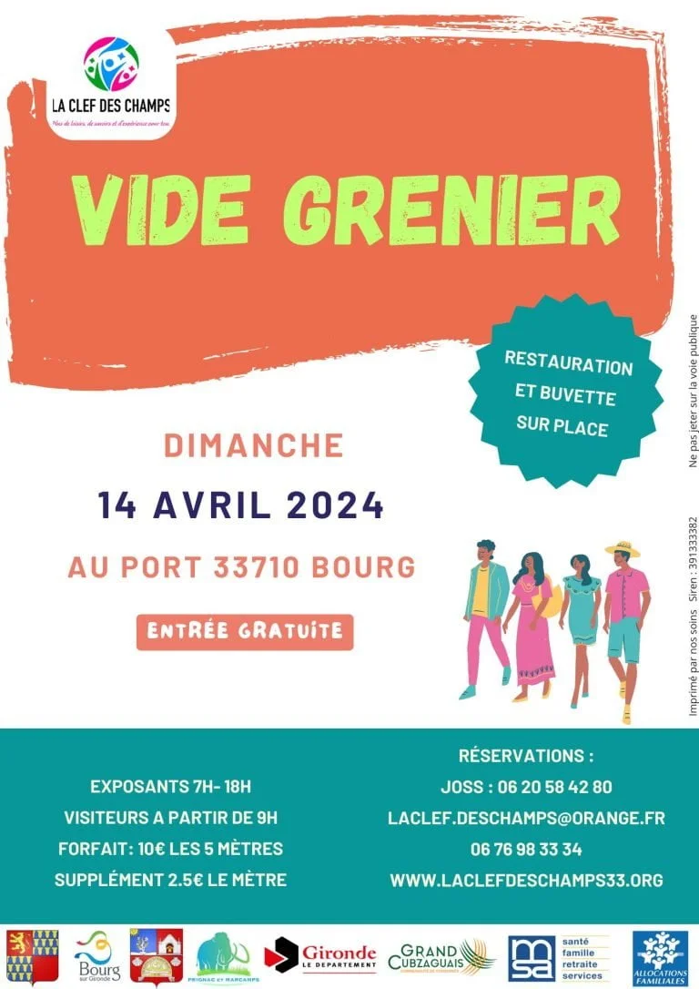 Nous espérons que le beau temps soit avec nous. Exposants 7h – 18h Forfait : 10 € Les 5 métres Supplément : 2.50 € Le mètre Réservations : Joss : 06 20 58 42 80 ou 06 76 98 33 34 LACLEF.DES WWW.LACLEFDESCHAMPS33.ORG